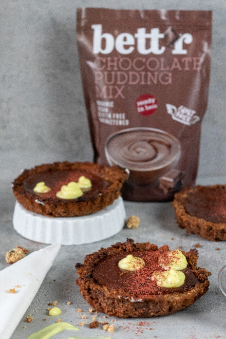 Ehhez a recepthez az új Bettr gluténmentes csokoládépudingot használtuk. Szinte minden desszert tökéletes kiegészítője. Még gyermekkori emlékeket is felidézhet az édesanyja vagy a nagymama által készített meleg, krémes pudingokról. És a legjobb rész? A csokoládépuding mindössze 1 perc alatt elkészül!