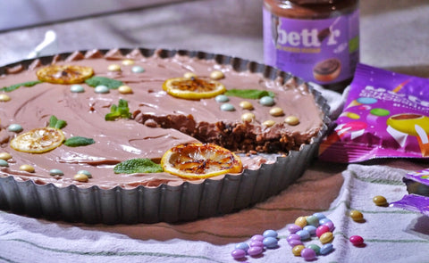 Ehhez a sajttortához a Bett'r Hazelnut-Cacao Spread-t használjuk –100%-ban bio kenhető cukor és pálmaolaj nélkül, gazdag mogyoró aromával és ellenállhatatlan csokoládé ízzel.