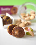 A Bett'r bio gyümölcsgolyók pisztácia töltelékkel vegánok és gluténmentesek, és tökéletesen kombinálják az aszalt gyümölcsöket és a dióféléket, hogy megörvendeztesse érzékeit. Élvezze a háromszoros örömet minden csomagban 3 darabbal! Bármilyen alkalomra hasznosak – akár útközben, sétálni, dolgozni vagy otthon pihenni, engedje meg magát ezeknek a természetes energiafokozóknak!