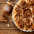 A Naughty Nuts Mandula Cinnamon Tahini 100%-ban természetes, minőségi alapanyagokból készül. Nem tartalmaz adalékanyagokat, például pálmaolajat vagy cukrot. A tahinit datolyával édesítik, amely harmonikusan kombinálódik mandulával, kesudióval és fahéjjal, így az igazi fahéjas tekercs ízét adja!